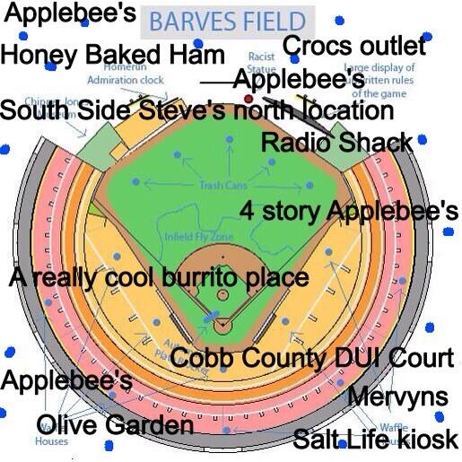 For those of us with roots in Atlanta now far-flung, I’m in blazon’s camp– the Braves now play in CitiField as far as I know. Cumberland was a place I went to play video games. (Is there such a thing as a video game arcade anymore?) Y’all will work this out. I’m a fan. I can be stomped on pretty much with impunity…. with my eyes wide open. Anyone who thinks of this as a slap in the face has, IMO, never been slapped in the face. But shoot, if it matters that much to you, I’m not going to second-guess feelings. Enjoy the next few years and then take up MMA or whatever.